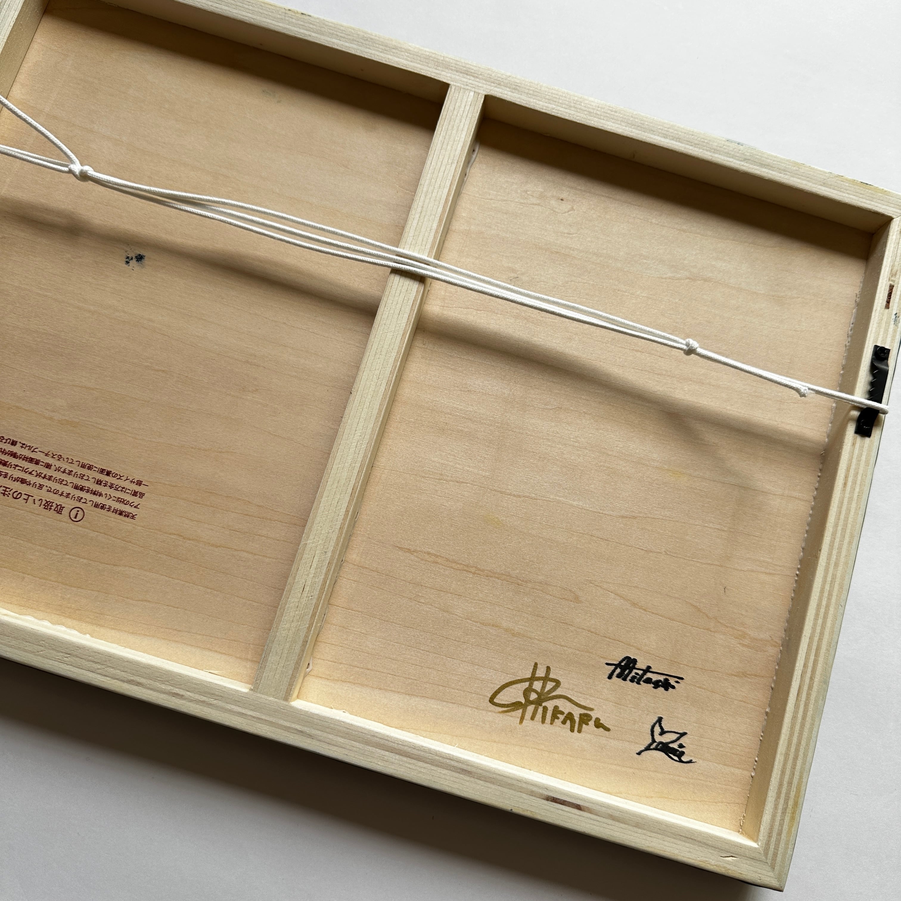 裏側に壁掛け用の紐がついています。