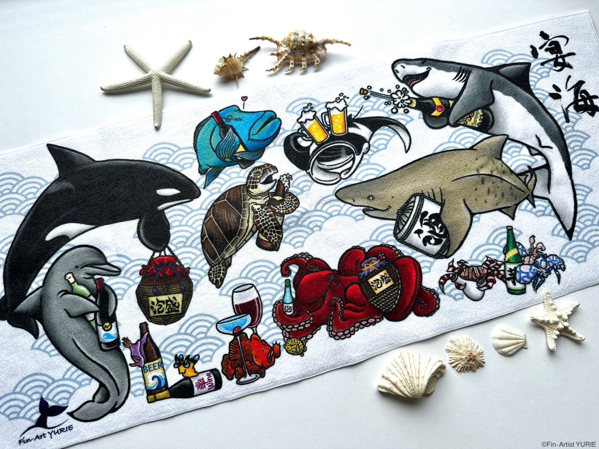 大人気!宴海の酔っ払いたちのフェイスタオルです。
