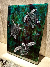 ウミガメたちを描きました。